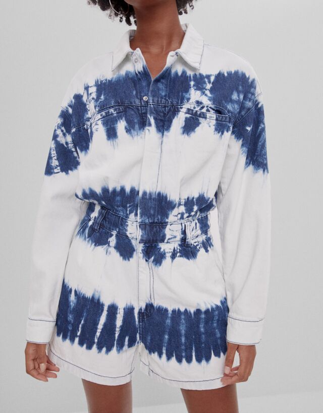 Tie Dye Denim Playsuit Woman Bershka